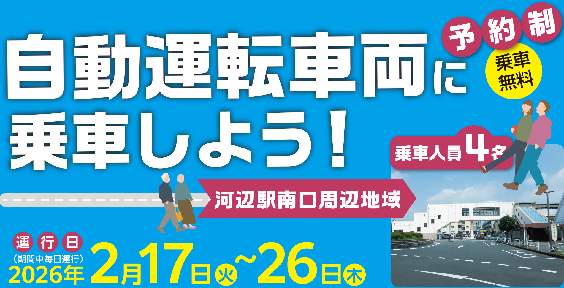 東京都では、自動運転技術を活用した都市づくりを推進しています。このたび青梅市河辺駅周辺において、自動運転レベル2(運転手搭乗型)により、グリーンスローモビリティ※を運行いたします。大日本ダイヤコンサルタント株式会社は、本運行に関する運営を担当しています。