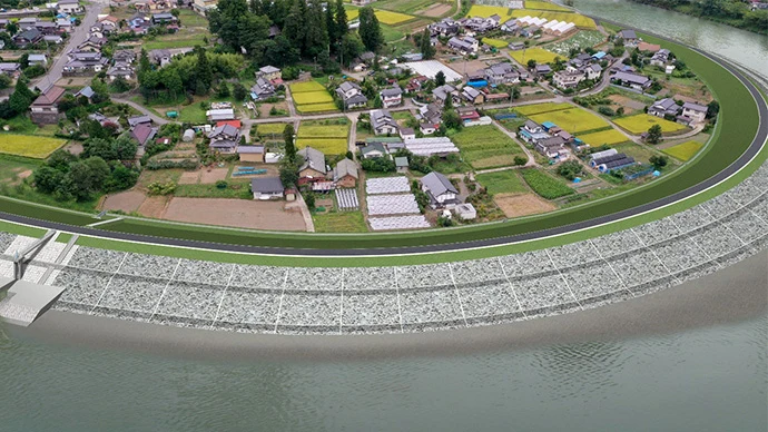 また、氾濫シミュレーションに基づくハザードマップの作成や対策工設計、施設の耐震診断に基づく補強対策等、事前防災・減災対策にも取り組むことで、国土強靱化に貢献しています。
