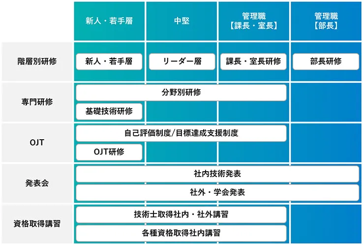 また、部門により技術者専門研修があります。