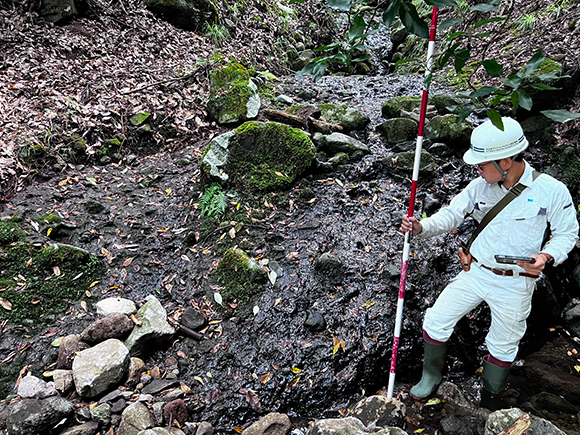 道路やダムといったインフラ整備に必要な地質調査や水文調査、道路防災点検など、土木地質に関わる多様な業務に携わっています。また、地震や豪雨などの災害発生時には、現地に赴いて被災状況の把握や原因の特定、復旧に向けた調査などにも携わっています。