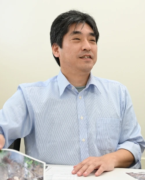 現在は長崎県対馬市にある法面の調査を担当している。「法面が崩壊し、土砂が堆積しているところが何カ所かあるので、近いうちに現地を調査して、対策を検討していきます」と語る姿には、頼もしさが感じられる。